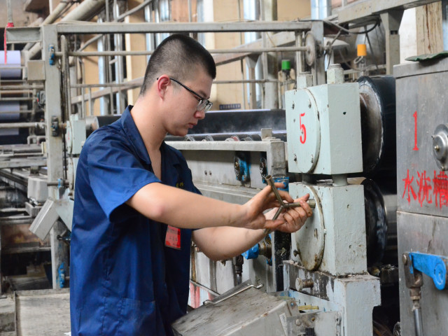 炎炎夏日里,人要時(shí)時(shí)注意防暑降溫,設(shè)備亦然。夏季車間溫度高,濕度重,對(duì)設(shè)備的維護(hù)保養(yǎng)要比其它季節(jié)更重要。一上班,面一車間設(shè)備人員李洪凱和師父韓海濤就開(kāi)始了對(duì)車間印染設(shè)備的維護(hù)保養(yǎng)工作。清潔設(shè)備表面、檢查緊固零部件、檢查更換易磨損零件……內(nèi)容看似簡(jiǎn)單,但只要把這些簡(jiǎn)單的基礎(chǔ)性保養(yǎng)工作做好,就能大大減少設(shè)備的檢修工作量和檢修次數(shù),保障設(shè)備的順利運(yùn)行。