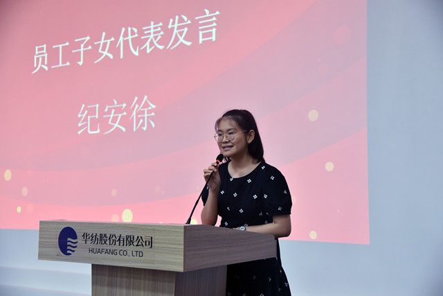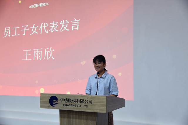 員工子女代表紀(jì)安徐、王雨欣在發(fā)言中,對(duì)家庭和公司表達(dá)了感激之情,并結(jié)合自身的學(xué)習(xí)情況談了個(gè)人的感受和對(duì)未來(lái)的憧憬。營(yíng)銷管理部部長(zhǎng)楊霞作為家長(zhǎng)代表發(fā)言,她表示,公司對(duì)員工家庭的關(guān)心,讓大家深深感受到華紡大家庭的溫暖,也享受到了公司發(fā)展的成果。