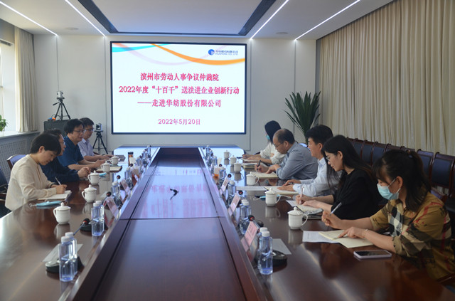 市勞動(dòng)人事?tīng)?zhēng)議仲裁院副院長(zhǎng)翟瑞民、勞宏偉,調(diào)解仲裁二庭庭長(zhǎng)孫靜,四級(jí)主任科員畢延軍等“送法服務(wù)隊(duì)”一行,在公司副總經(jīng)理趙玉忠、孫玉濤等陪同下,參觀了檢測(cè)中心、綜合辦公區(qū)、面料展廳、花布展廳、家紡展廳、創(chuàng)意設(shè)計(jì)中心、工程技術(shù)研究院等區(qū)域。雙方圍繞新形勢(shì)下構(gòu)建和諧勞動(dòng)關(guān)系、推動(dòng)企業(yè)整體發(fā)展等內(nèi)容,進(jìn)行了深入交流與座談。