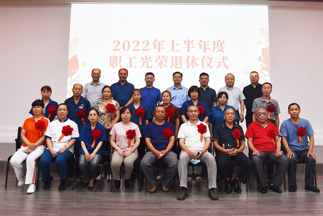 7月23日上午,公司在會議中心為2022年上半年度退休員工舉行了光榮退休儀式。公司董事長盛守祥、公司其他班子成員、今年上半年的退休職工、主管以上管理者及員工代表等,參加當天的儀式。