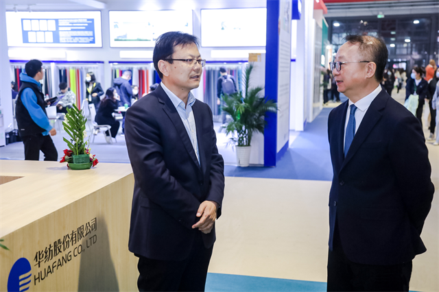 期間,中國紡織工業(yè)聯(lián)合會會長孫瑞哲,國家紡織產(chǎn)品開發(fā)中心主任李斌紅,國家紡織產(chǎn)品開發(fā)基地秘書處秘書長、中國紡織信息中心產(chǎn)品開發(fā)部主任陳小麗等到公司展位觀展。在與公司黨委書記、董事長盛守祥及服裝面料分公司總經(jīng)理王超交流中,孫瑞哲提到,華紡作為中國紡織印染行業(yè)的龍頭骨干企業(yè),要加強與參展企業(yè)交流溝通,既要展現(xiàn)公司魅力,又要做好信息交換、交流學習等相關(guān)工作,抓住機會,拓展品牌影響力,為公司開拓市場、擴大知名度,實現(xiàn)從制造加工向品牌創(chuàng)意的轉(zhuǎn)型升級夯實基礎。