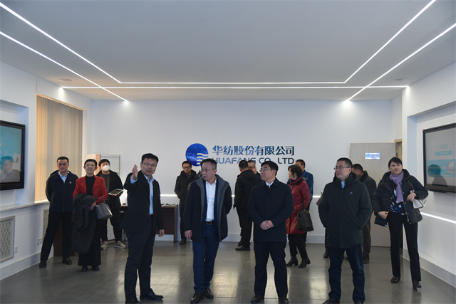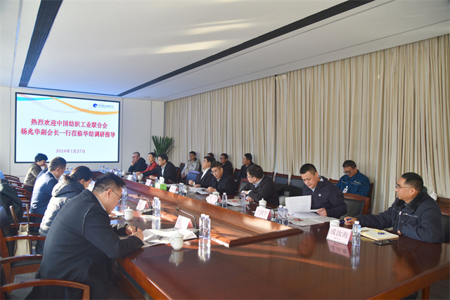 1月27日,中國(guó)紡織工業(yè)聯(lián)合會(huì)副會(huì)長(zhǎng)楊兆華一行到華紡股份調(diào)研指導(dǎo)工作。市工信局黨組書記、局長(zhǎng)姚振祥,濱城區(qū)副區(qū)長(zhǎng)袁見,公司黨委書記、董事長(zhǎng)盛守祥陪同調(diào)研。