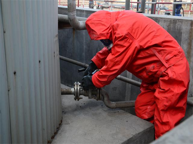 兩名穿戴防護(hù)裝備的人員關(guān)閉了相關(guān)的氨水罐、氨水泵閥門,并安排人員迅速設(shè)立警戒線,禁止無關(guān)的人員及車輛進(jìn)入。查看氨水罐圍堰是否有泄漏點,用鐵锨鏟土進(jìn)行進(jìn)行封堵,防止污染物排出,造成環(huán)境污染。同時對已進(jìn)入排水溝的氨水用大量的稀釋水進(jìn)行稀釋,使污染物達(dá)到外排條件,各閥門關(guān)閉后泄露得到控制。整個過程緊張有序。