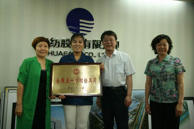 日前,濱州市總工會常務副主席耿慶東、副主席趙敏、女工部部長左麗華一行來到公司,為榮膺“全國五一巾幗標兵崗”的服裝車間縫制工段代授獎牌,并與該工段主管李艷艷進行了簡短的工作座談,公司副總經(jīng)理邱淑芳、工會主席鄭安江參加授牌與座談。