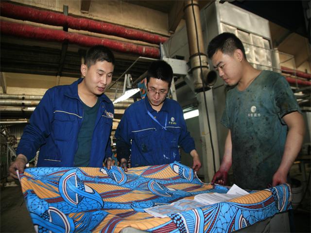 3月17日,花一車間南印制甲班班長吳樂、印花機機長李彬彬和副機長牟石磊,圍繞當班印制產(chǎn)品的質量展開改進分析,力求使本班產(chǎn)品印制提升到一個更好的水平?;ㄒ卉囬g、花二車間所生產(chǎn)的產(chǎn)品,絕大比重為出口國外市場,在非洲等傳統(tǒng)市場占有重要的市場份額和良好的市場信譽,靠的即是穩(wěn)定而過硬的產(chǎn)品質量?;ㄒ卉囬g、花二車間堅持“產(chǎn)品為王、質量制勝”的思想,使員工的質量意識得到持續(xù)增強。他們普遍認識到,質量是一個旅程,永遠沒有終點。