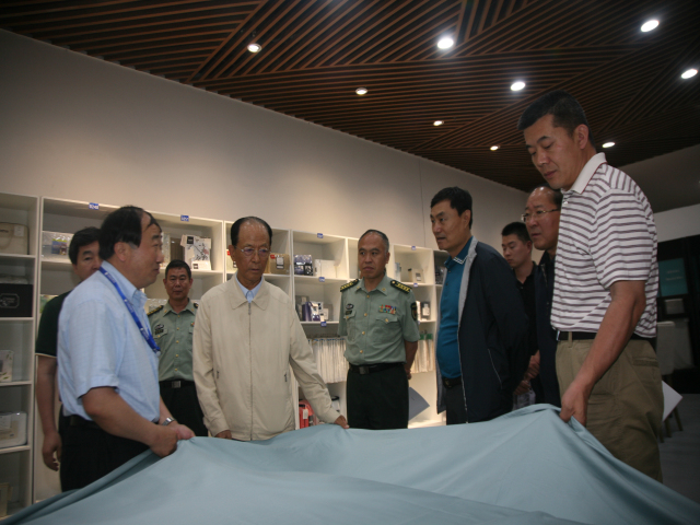 市人大常委會副主任呂德章,市政協(xié)副主席吳國瑞、趙建明,濱州軍分區(qū)參謀長許增全,公司黨委書記、董事長王力民,副總經(jīng)理孫中然等,陪同張文臺上將一行參觀了家紡展廳等處所。